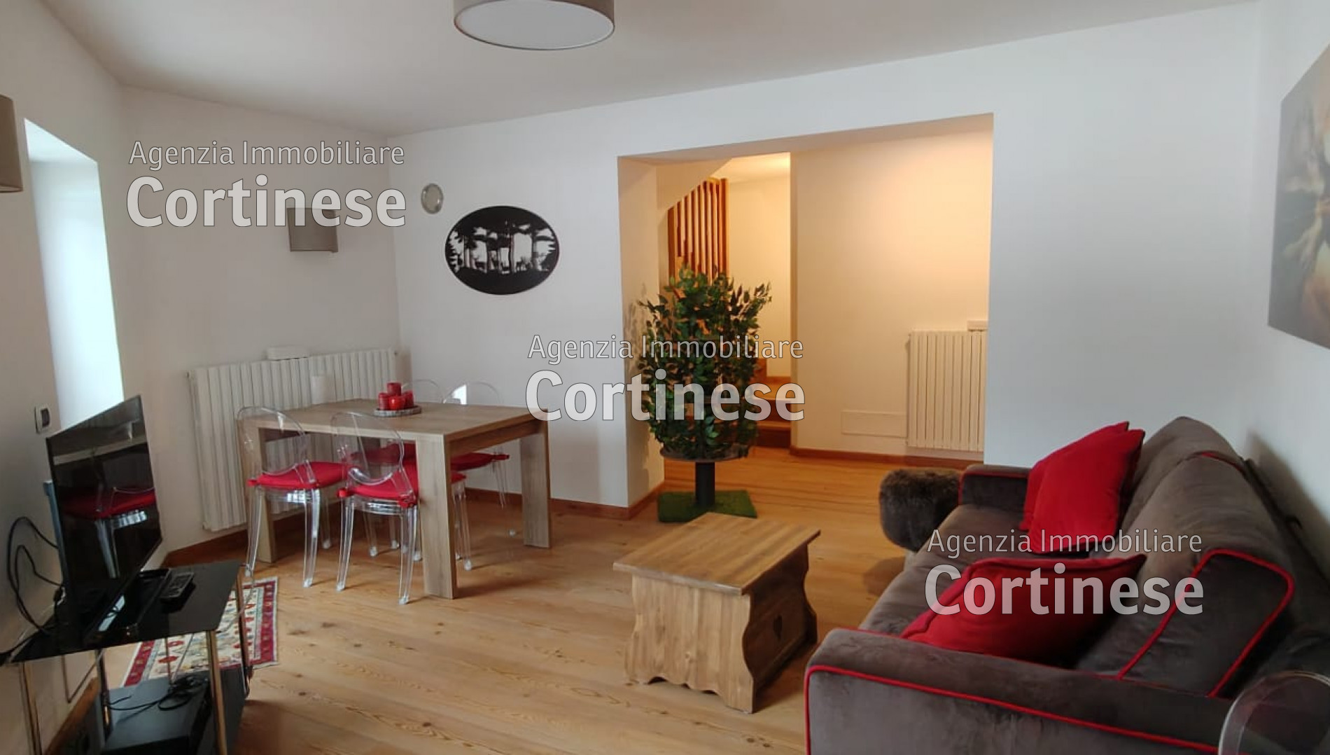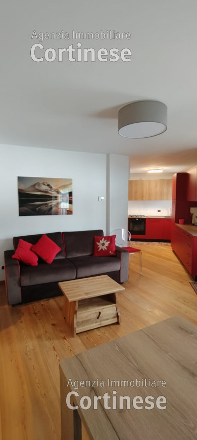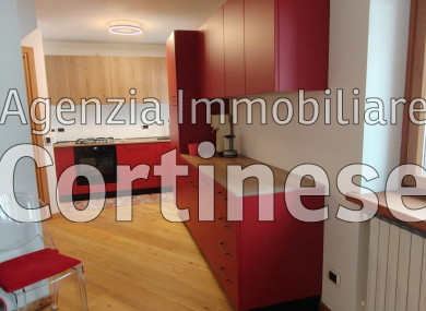 Nuovo, delizioso appartamento completamente arredato ai piani rialzato e primo di un condominio con ascensore. Di ampia metratura, luminoso e ben esposto con affaccio sulle Tofane e sulle  Rocchette.